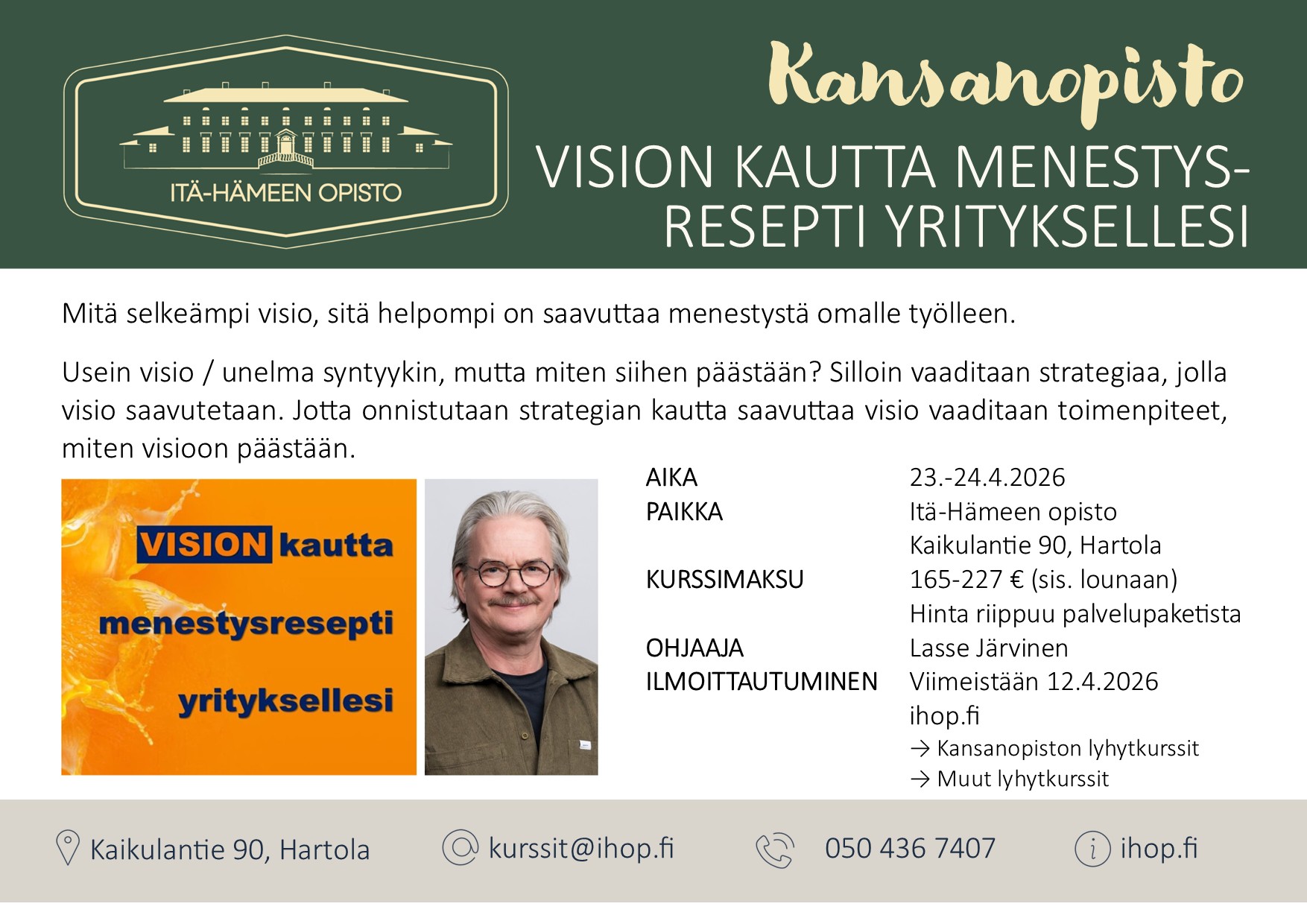 Vision kautta menestysresepti yritykselle, Hartola
